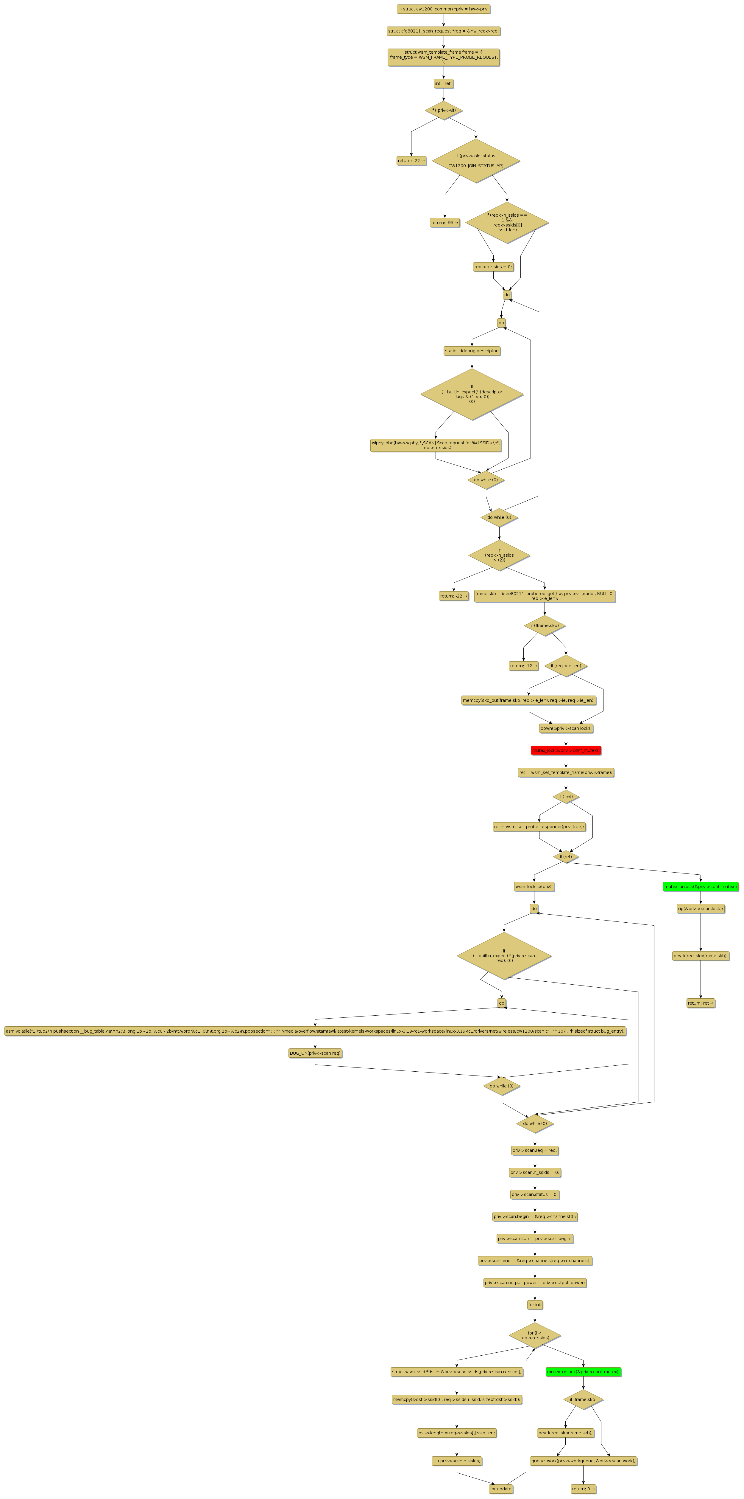 mutex lock @ [2424+30+/linux-3.19-rc1/drivers/net/wireless/cw1200/scan.c]