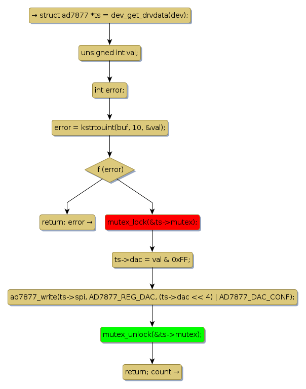 mutex lock @ [13183+23+/linux-3.19-rc1/drivers/input/touchscreen/ad7877.c]