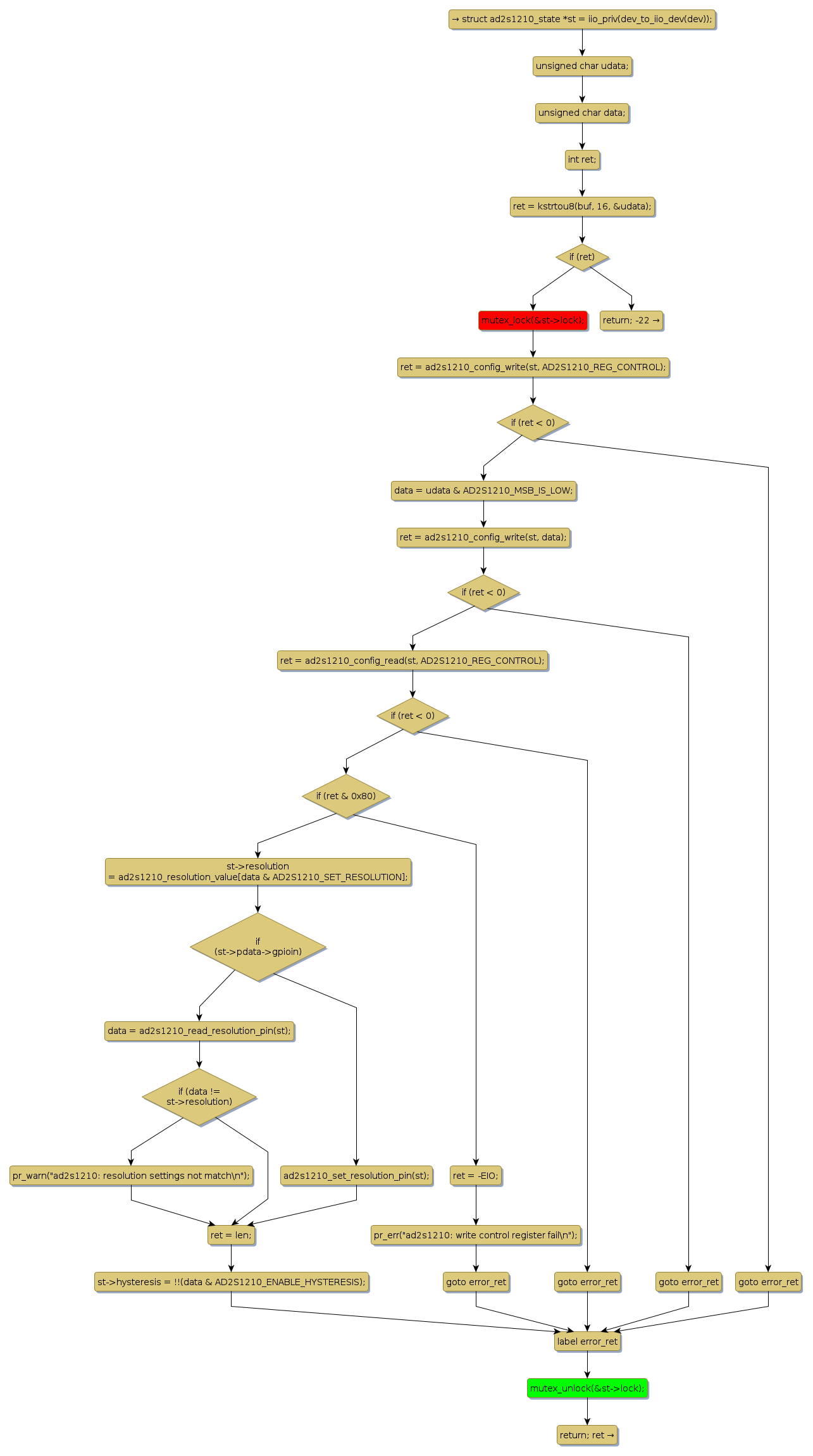 mutex lock @ [7388+22+/linux-3.19-rc1/drivers/staging/iio/resolver/ad2s1210.c]