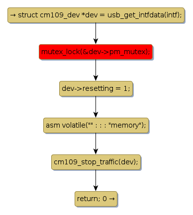 mutex lock @ [22162+27+/linux-3.19-rc1/drivers/input/misc/cm109.c]