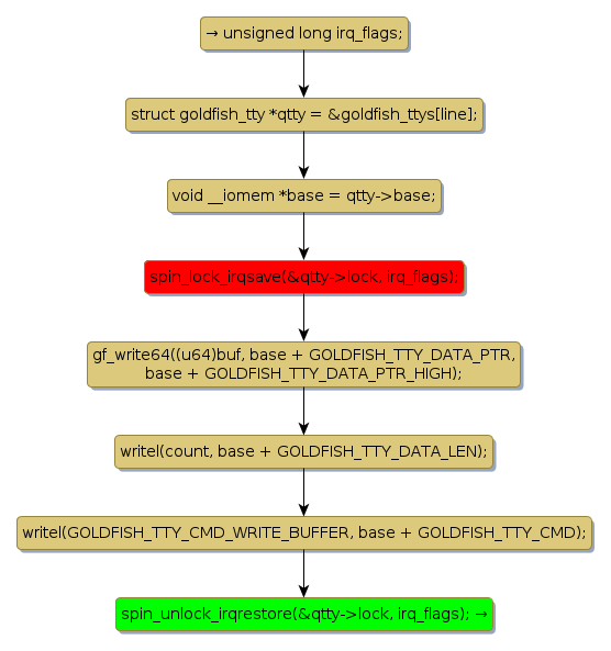 spin lock @ [1713+42+/linux-3.19-rc1/drivers/tty/goldfish.c]