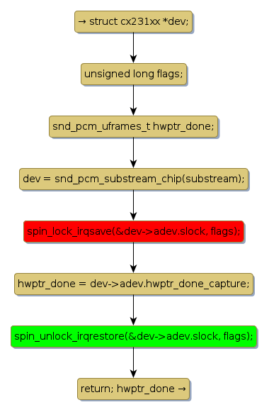 spin lock @ [15114+43+/linux-3.19-rc1/drivers/media/usb/cx231xx/cx231xx-audio.c]