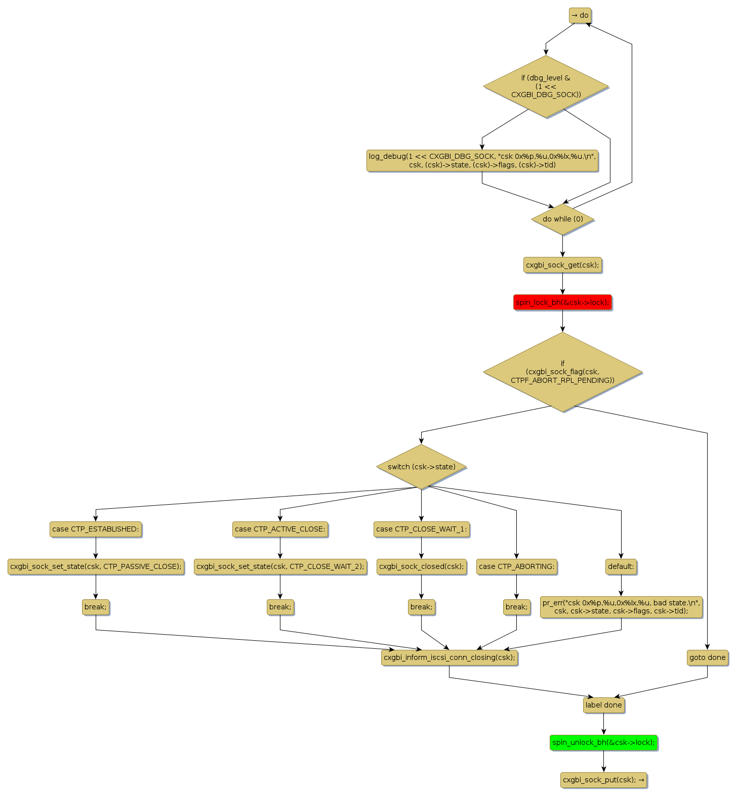 spin lock @ [22962+25+/linux-3.19-rc1/drivers/scsi/cxgbi/libcxgbi.c]