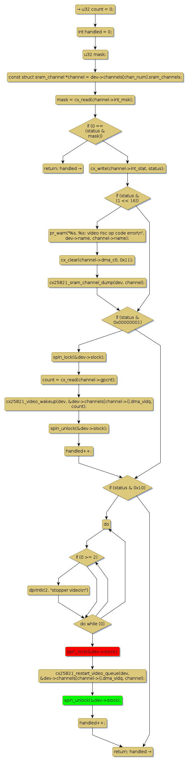 spin lock @ [6912+23+/linux-3.19-rc1/drivers/media/pci/cx25821/cx25821-video.c]